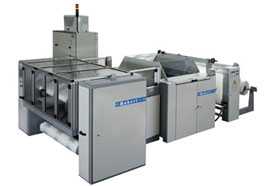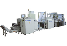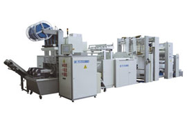 Specialistic line for the production of industrial bags pre-cutted and wolded. Packing: bags winded on carton core dia.76mm. Winding unit in continuous on two station, with automatic tearing and sticking of the fi lm on the new core. Automatic discharge of the roll at the end.