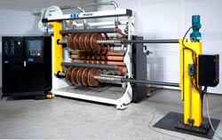 Roll diameter up to 2000mm. Dual pull rollers in 4 quadrant control.Machine speed 500mtrs/min. Ultrasonic tension and gap control. Colour touch screen or SCADA interface.